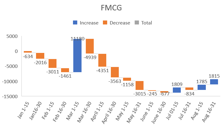 Specific periods of inflow and outflow: The significant outflows in Jan, Feb, 2nd half of Mar, April and May. Inflows occurred in 1st half of Mar and August.