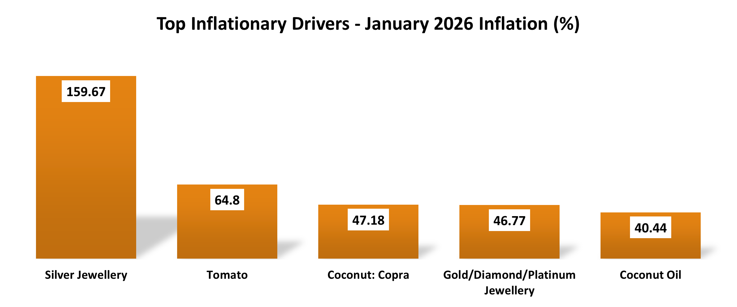 Gold and silver jewellery now more prominent under Personal Care can introduce sharp spikes. In January 2026, silver jewellery inflation hit 159.67%.