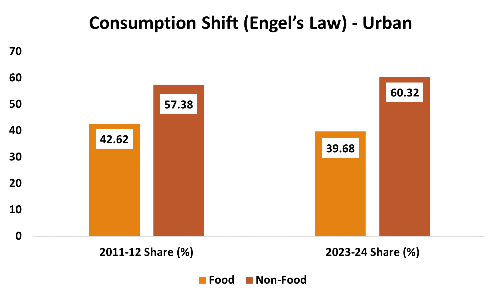 It is no longer a food-dominated snapshot of a lower-income economy.