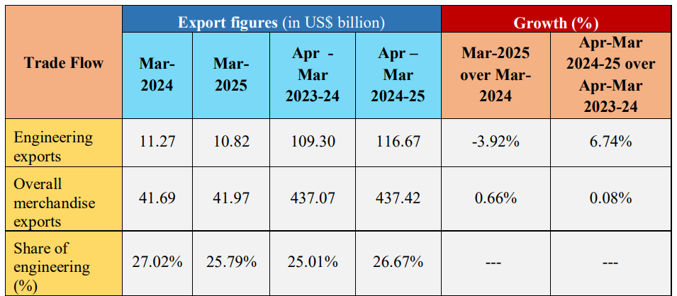Engineering exports now account for 26.7% of India’s merchandise exports.