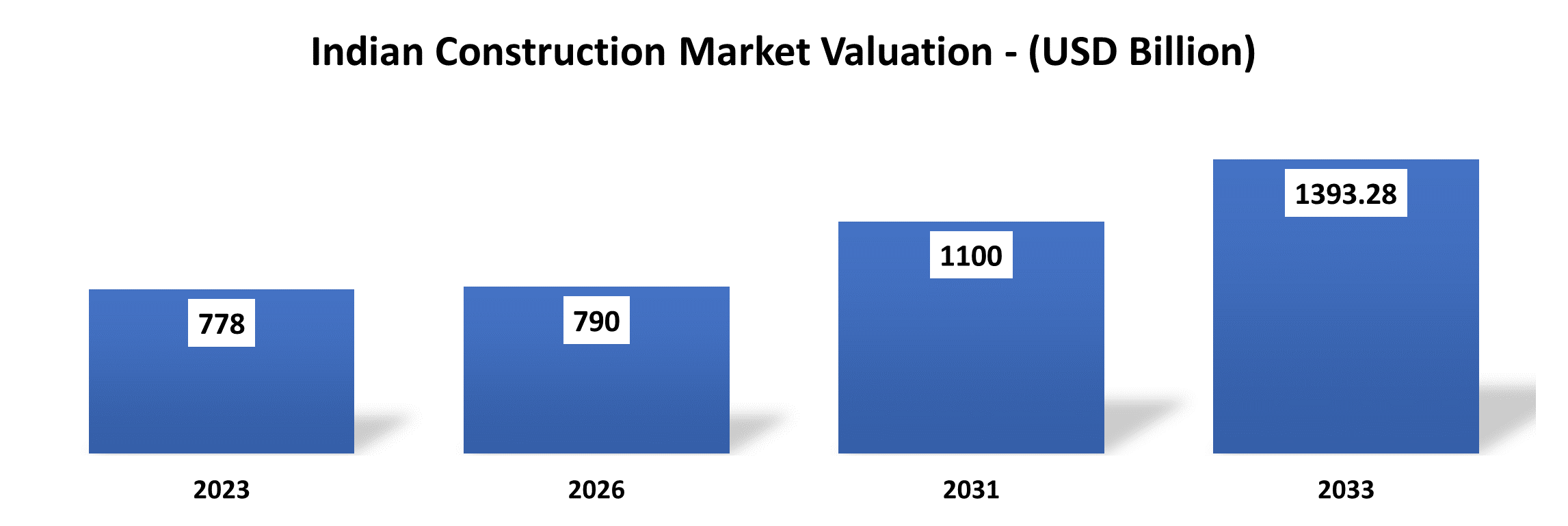 The Indian construction market is valued at approximately US$ 790 billion in 2026, following a consistent growth momentum that achieved a 14.2% CAGR between 2020 and 2024.
