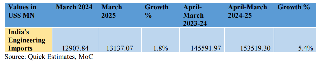 The trade balance in engineering goods remains positive, with exports outpacing imports in recent years.