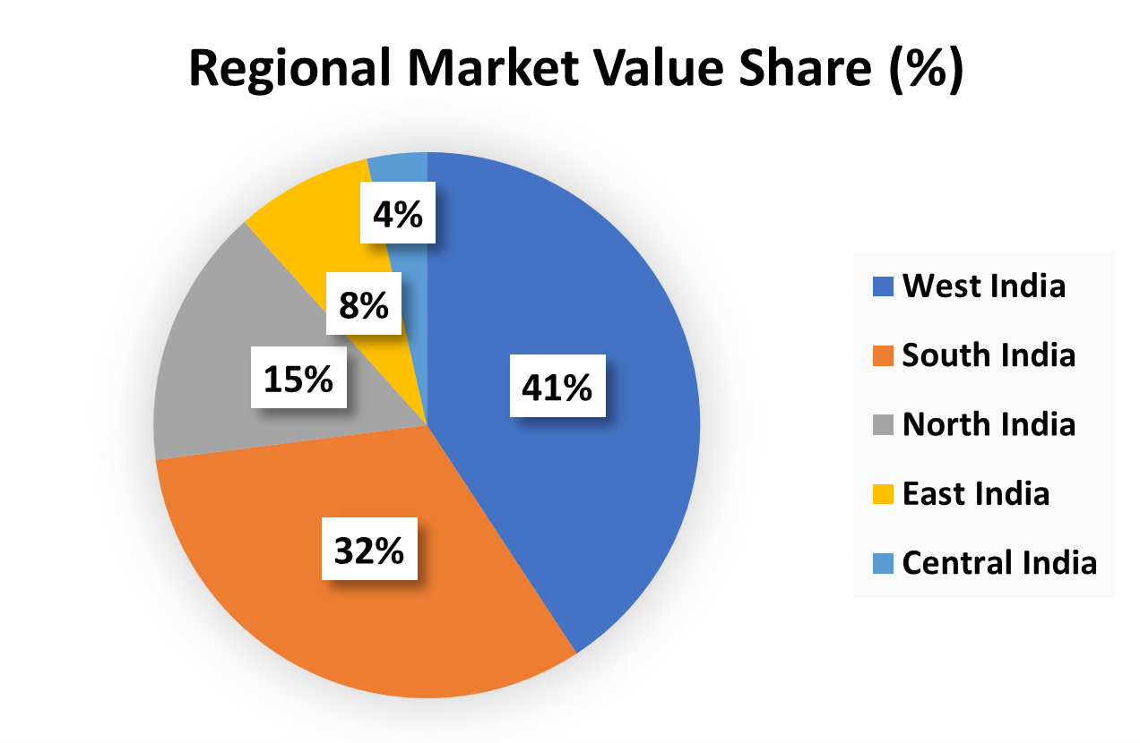 West India remains the dominant geographical contributor, accounting for 40.77% of the total construction market value in 2025 due to intensive industrial activity in Maharashtra and Gujarat.