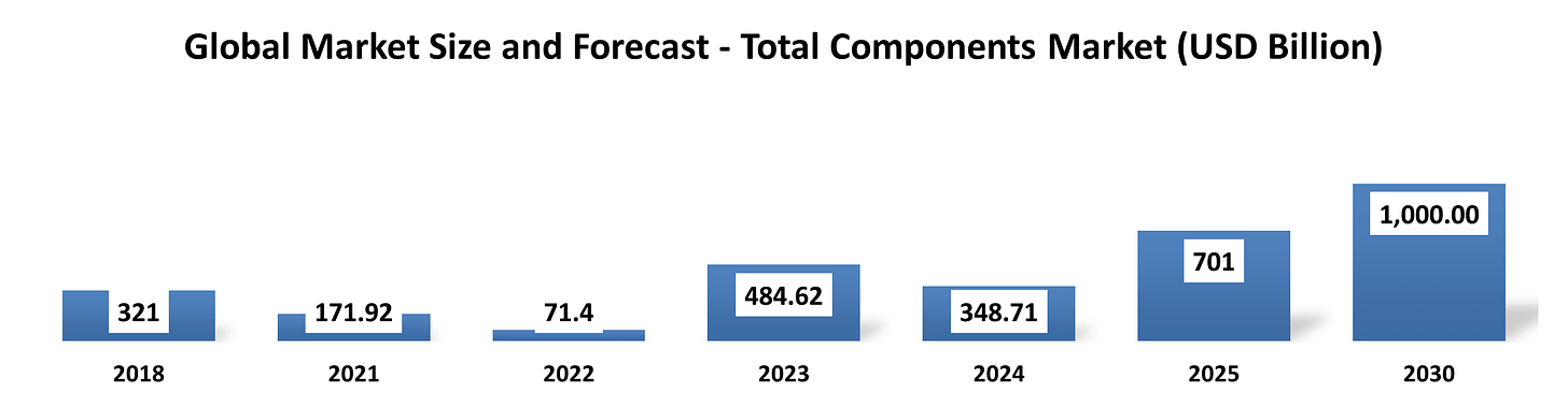 IoT devices such as smart home products, industrial sensors, and connected appliances rely heavily on microcontrollers and sensors. If the number of connected devices increases from 15 billion to 30 billion globally within a decade, electronic component demand could nearly double for certain categories like sensors and microchips.Industrial automation and robotics adoption