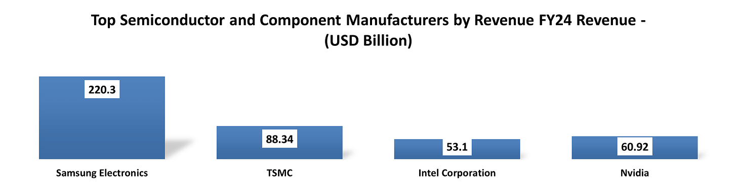 The competitive landscape is defined by massive capital expenditure among global leaders, with NVIDIA becoming the first vendor to surpass USD 100 billion in annual semiconductor sales in 2025.