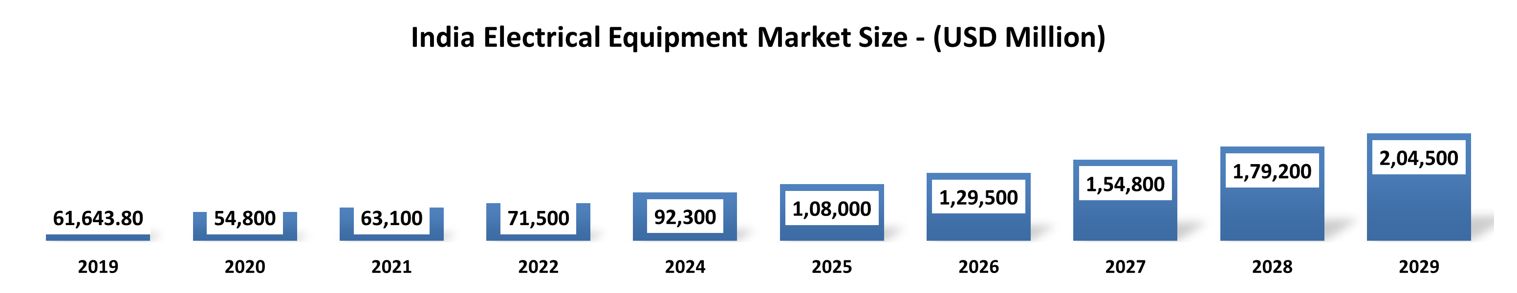 This represents a nearly six-fold increase from the ₹1.9 lakh crore recorded in FY15 . As shown in the market size outlook, the industry has maintained a steady upward trajectory since 2019, when the market was valued at USD 61,643.80 million, and is projected to reach approximately USD 204,500 million by 2029.