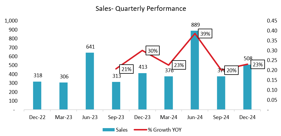 Revenue Growth: 23% YoY to ₹508 crore (from ₹413 crore).